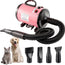 Professionele föhn voor het verzorgen van huisdieren met instelbare snelheid en temperatuur, 4 mondstukken voor honden en katten, stille, robuuste föhn - elektrisch met snoer, roze en blauw
